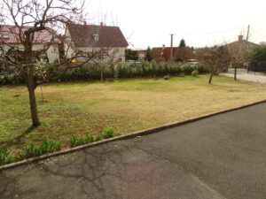 Das Grundstück hat ca. 600 m² auf dem noch eine Doppelgarage und Carport steht.