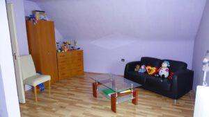 Im Erdgeschoss mit ca. 80 m² befindet sich der Eingang, ein Wohnzimmer, eine Küche, eine Speisekammer, ein Gäste WC sowie ein Wannenbad und zwei Schlafzimmer.