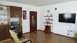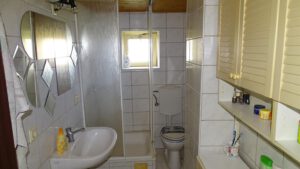 Das Haus kommt mit ca. 85 m² Wohnfläche die sich auf den Eingang, einem Vorraum, einem Wohnzimmer, zwei Schlafzimmer sowie zwei Duschbädern mit WC und einer Küche mit Essplatz aufteilt.