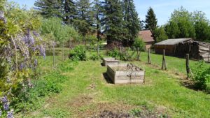 Das Grundstück hat ca. 1500 m² auf dem des Weiteren ein Freisitz, ein Holzschuppen, eine Garage, zwei Carports, ein Erdkeller mit ca. 15 m² sowie Obstbäume stehen.