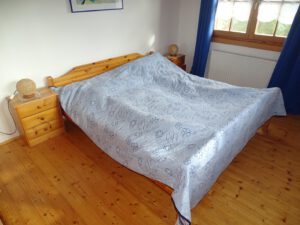 Im Erdgeschoss mit ca. 80 m² befindet sich der Eingang, ein Wohnzimmer, die Küche, ein Essplatz sowie ein Duschbad und zwei Schlafzimmer.