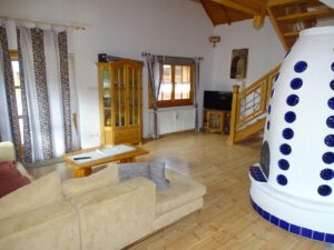 Im Wohnbereich steht ein schöner Kamin der, neben den Holzbalkendecken, dem Ganzen einen schönen Flair gibt.