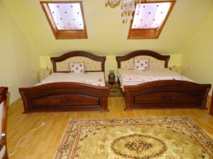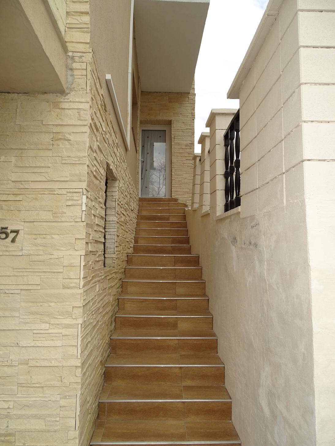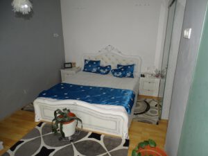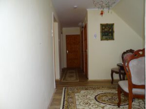 Im ersten Obergeschoss finden Sie dann einen weiteren Eingang, das Treppenhaus, einen Vorraum, ein Gäste WC, zwei Duschbäder, zwei Schlafzimmer, die Küche und ein Esszimmer.