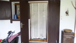 An den Fenstern sind Fliegengitter und Klappläden vorhanden - Sat TV und eine Überwachungskamera sind ebenfalls installiert.