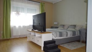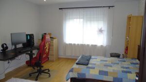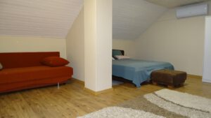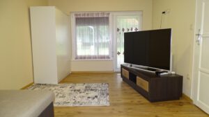 Im Apartment mit ca. 60 m² befindet sich ein weiterer Eingang, eine Küche mit Essplatz, ein Duschbad, ein Wohnzimmer sowie einem großen Schlafzimmer im Obergeschoss.