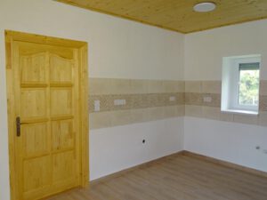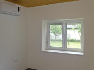Das Haus kommt mit ca. 55 m² Wohnfläche welche sich auf den Eingang, einem Vorraum mit Garderobe, einer Küche mit Essplatz, einem Duschbad sowie dem Schlafzimmer und einem Wohnzimmer aufteilt.