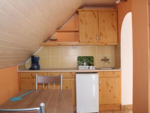 Das Gästeapartment kommt mit ca. 21 m² Wohnfläche welche sich auf den Eingang, einem Duschbad, einer Wohnküche und einer Dachterrasse mit ca. 23 m² aufteilt.