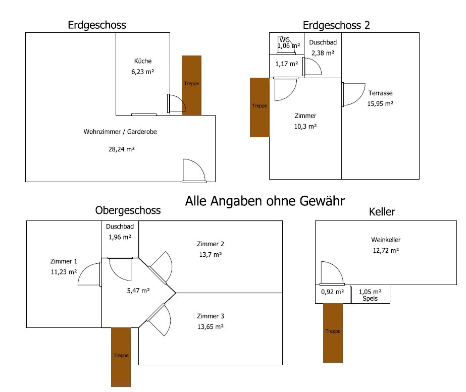 Zusätzlich haben wir ein Untergeschoss mit ca. 14 m² Fläche, dort befindet sich eine Speisekammer und ein Weinkeller.
