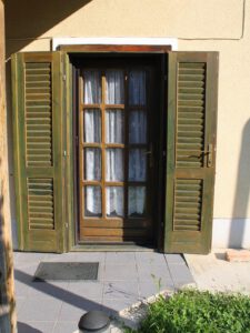 An den Fenstern befinden sich Klappläden. Auf der Terrasse lassen sich schöne Sommerabende im Freien verbringen.