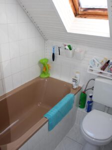 Im Obergeschoss mit ca. 45 m² Wohnfläche finden Sie drei Schlafzimmer und ein Wannenbad.