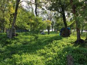 Das Grundstück hat ca. 1500 m² auf dem des Weiteren ein Geräteschuppen und eine Garage steht.
