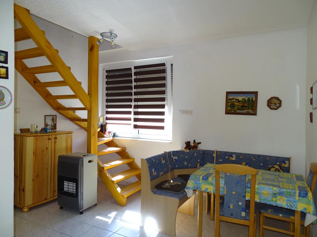 Im Erdgeschoss befindet sich der Eingang, eine Küche, die Speisekammer, ein Duschbad, eine Essecke sowie ein Schlafzimmer und das Wohnzimmer.