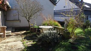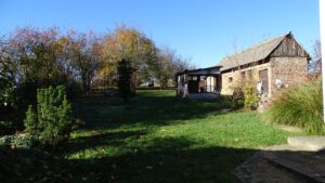 Das Grundstück hat ca. 1900 m² auf dem des Weiteren ein Nebengebäude und Obstbäume stehen.