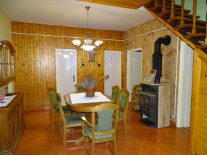 Im Erdgeschoss befindet sich der Eingang, ein Wohnzimmer, drei Schlafzimmer, ein Gäste WC sowie eine Küche mit Speisekammer und ein Dusch- und Wannenbad.