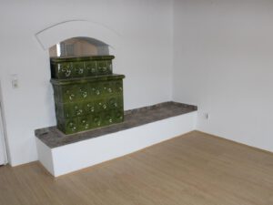 Ein Kachelofen sowie Rollläden an den Fenstern sind ebenfalls vorhanden.