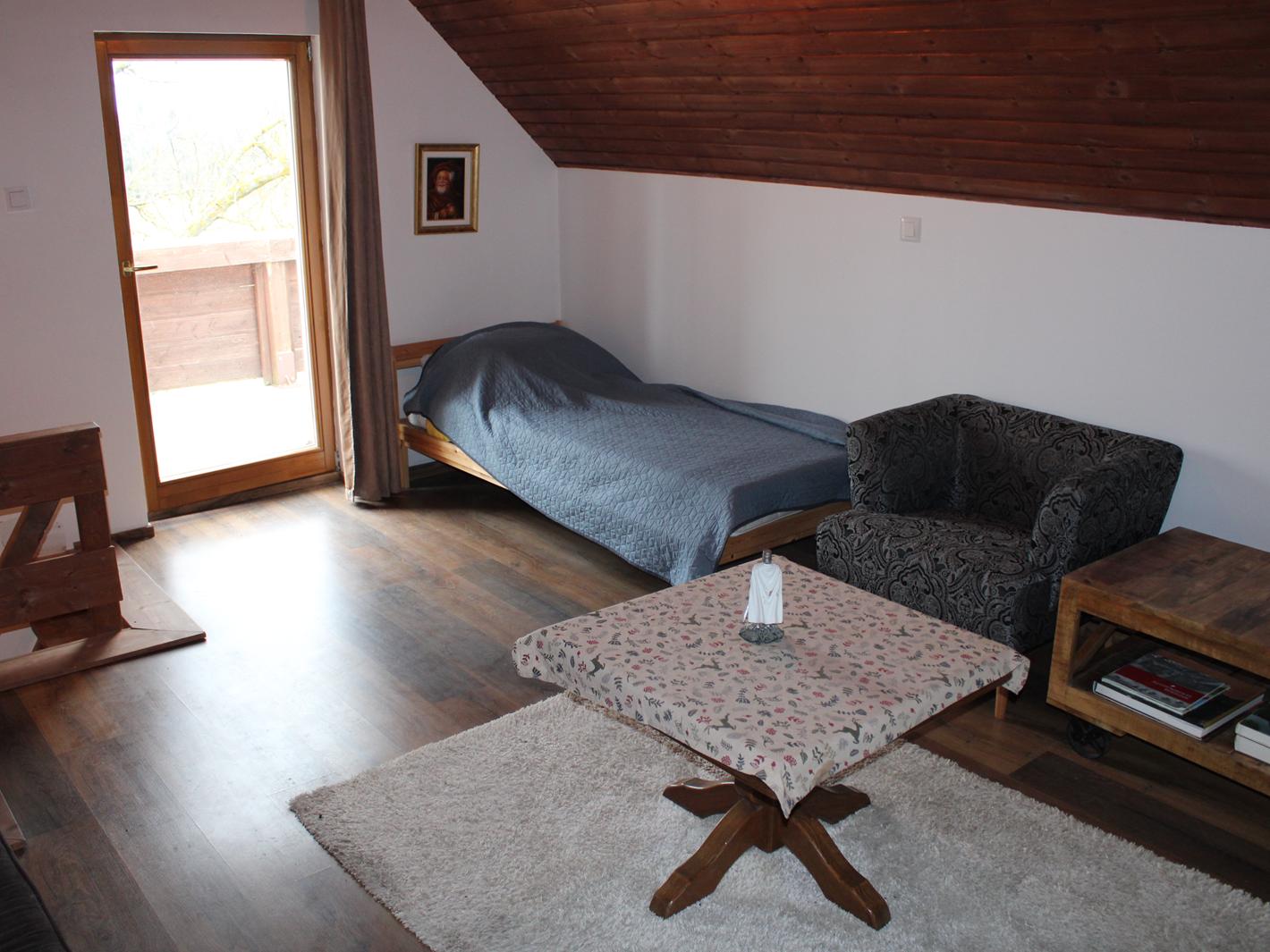 Im Obergeschoss finden Sie ein Atelier mit Dachterrasse - Hier kann man wunderbar warme Sommerabende im Freien verbringen.