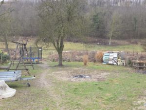 Das Grundstück hat ca. 1100 m² auf dem des Weiteren ein Brunnen und Obstbäume stehen. Ebenfalls vorhanden sind rund 55 m² Fläche in Form von Abstellräumen und der Garage.
