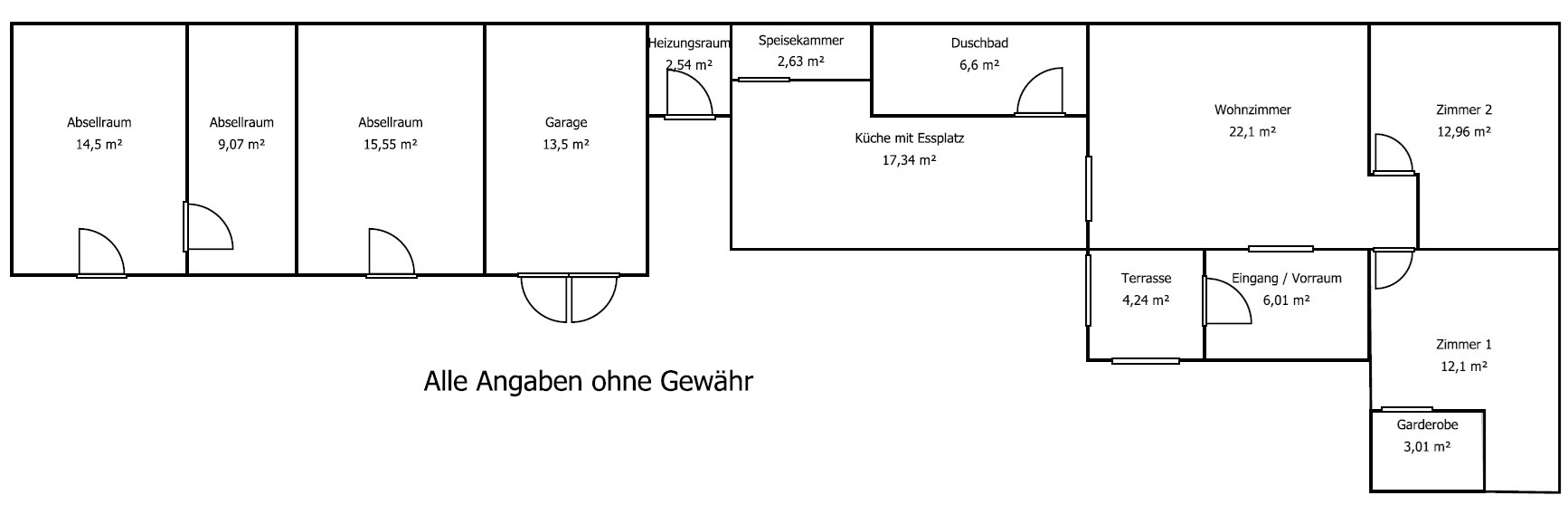 Das Haus kommt mit ca. 80 m² Wohnfläche die sich auf den Eingang, einem Vorraum mit Garderobe, einem Wohnzimmer, zwei Schlafzimmer, einer Küche mit Essplatz sowie Speisekammer und einem Duschbad aufteilt.