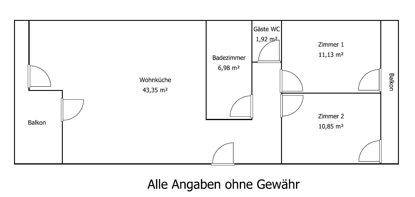 Die Wohnung kommt mit ca. 75 m² Wohnfläche die sich auf den Eingang, einer großen Wohnküche, einem Dusch- und Wannenbad sowie einem Gäste WC und zwei Schlafzimmern aufteilt.